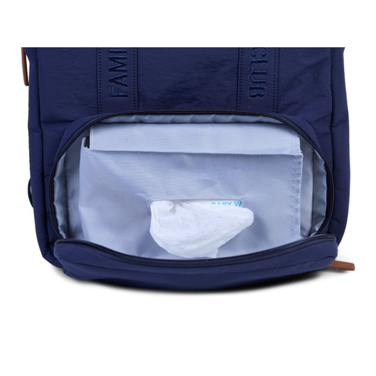 Està equipat amb dos compartiments grans i nou de més petits. Una bossa amb cremallera us permet emmagatzemar roba bruta quan calgui. Les bosses addicionals més petites permeten emmagatzemar amb seguretat el xumet del vostre nadó, així com la vostra pròpia cartera i claus. Dues bosses refrescants mantindran la teva beguda i aperitius frescos durant el dia. Si el vostre petit fa un merder durant el dinar, la bossa davant de la bossa especialment dissenyada per a tovalloletes humides us serà molt útil. És molt fàcil accedir-hi, de manera que mai més hauràs de buscar tovalloletes humides! I, per descomptat, també s'inclou el canviador.