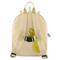Motxilla infantil, de cotó orgànic. Té dues butxaques que es tanquem amb cremallera. Porten una tanca perquè les dues tires que les espatlles quedin agafades i evitar així que la motxilla els vagi relliscant.