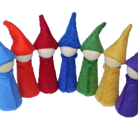 Nins de fusta amb barret i capa de feltre, perfecte per taules d'estacions, minimons, contacontes...