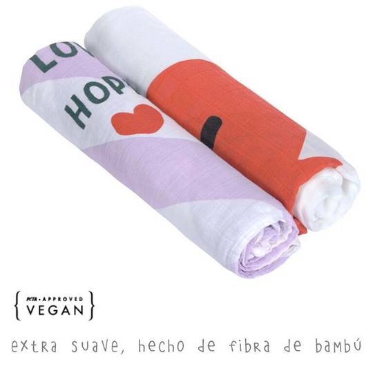 Pack de dues muselines fabricades amb la combinació perfecta de fibra de bambú i cotó que ofereixen la major naturalitat i confort.