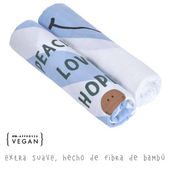 Pack de dues muselines fabricades amb la combinació perfecta de fibra de bambú i cotó que ofereixen la major naturalitat i confort.