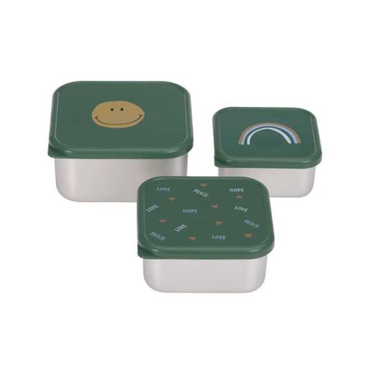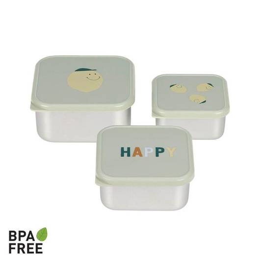 Les caixes d'aperitius d'acer inoxidable LÄSSIG de forma quadrada amb el seu disseny són ideals per a petits aperitius sobre la marxa. Les caixes no contenen BPA, són aptes per al rentavaixelles i es poden apilar una dins de l'altra per estalviar espai.