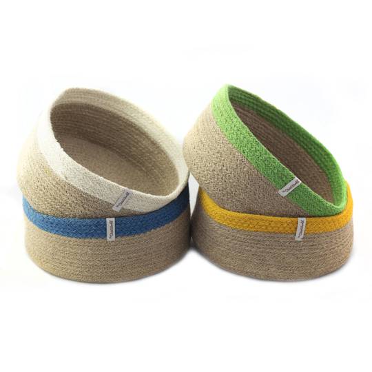 Panera de yute fonda amb la vora de color.