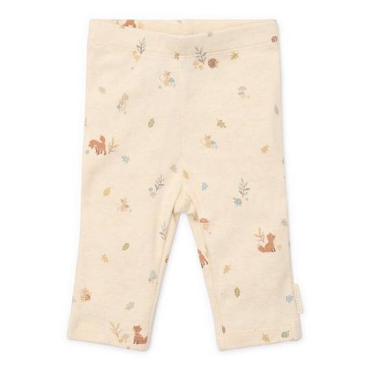 Pantalons de nadó de la col·lecció Forest Friends, imprès sobre teixit Interlock sorra melange. Amb caràcters de guineu i fulles. 100% cotó orgànic