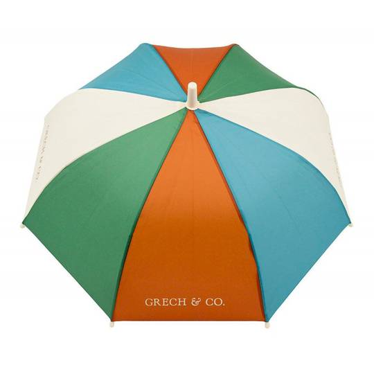 Un paraigües ple de color fabricat amb materials sostenibles i ecològics a partir d'ampolles de plàstic reciclades i reconvertides en tela de polièster. A més, l'estructura del paraigües està feta amb fibra de vidre, aconseguint que sigui molt resistent.