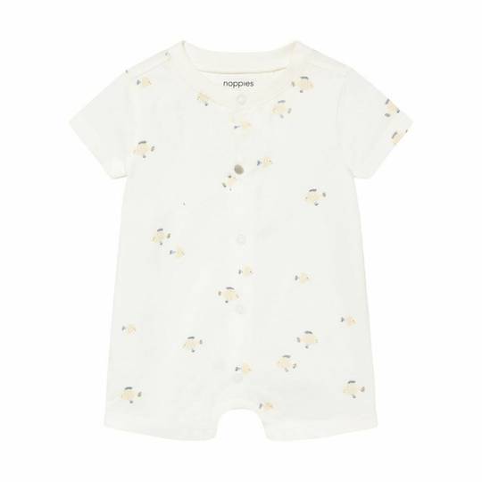 Fet de punt de cotó orgànic elàstic, es mou amb el teu nadó. Els botons a pressió a l'esquena i a l'entrecuix faciliten vestir-lo i canviar el bolquer. Les mànigues curtes, el coll rodó i la vora creuada proporcionen una comoditat addicional. Amb la certificació GOTS (CERES-0366), està fet de manera ecològica. Una peça de roba d'estiu ideal per a les primeres aventures del nadó.