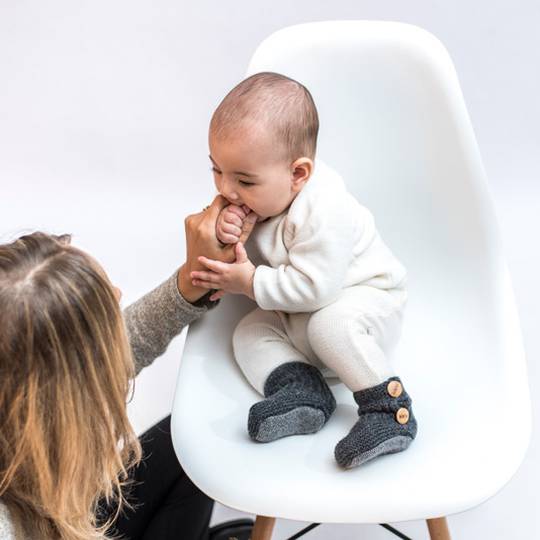 Bota de llana (80% llana verge-20% poliamida) teixida amb punt de molsa o "a punt babau".