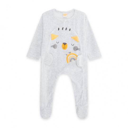 Pijama màniga llarga amb base de color gris i un estampat d'animal de color taronja, amb botons de pressió a la part del davant.