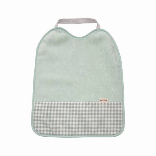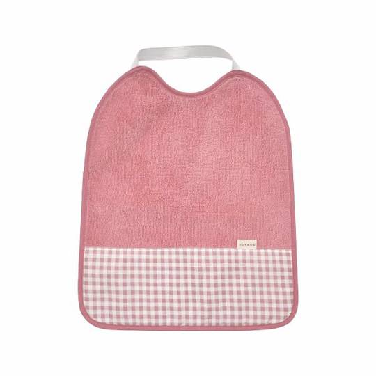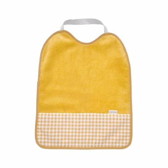 Pitet amb goma al voltant del coll, dissenyat perquè es posi i es tregui fàcilment, fomentant l'autonomia. Amb un folre de tela impermeable al darrere, aquest pitet no només és pràctic, sinó també respectuós amb el medi ambient. És de rus de bambú extra suau i absorbent, ideal per tenir-lo a casa o portar-lo a l'escola.