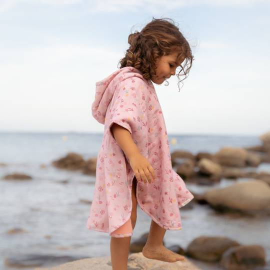 Per assecar-se o proporcionar calor i comoditat després del bany. El ponxo de platja és de talla única i meravellosament suau. 100% cotó orgànic