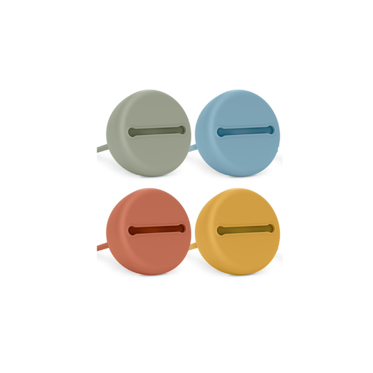 Funda de xumet de silicona suau i flexible. Es pot penjar del bressol. Amb nansa tipus brida que s'adapta a qualsevol gruix de manillar de carro, barrera de bressol o nansa de bossa. Amb capacitat fins a 2 xumets. Portaxumets amb ranura tipus cascavell per introduir i treure els xumets.
