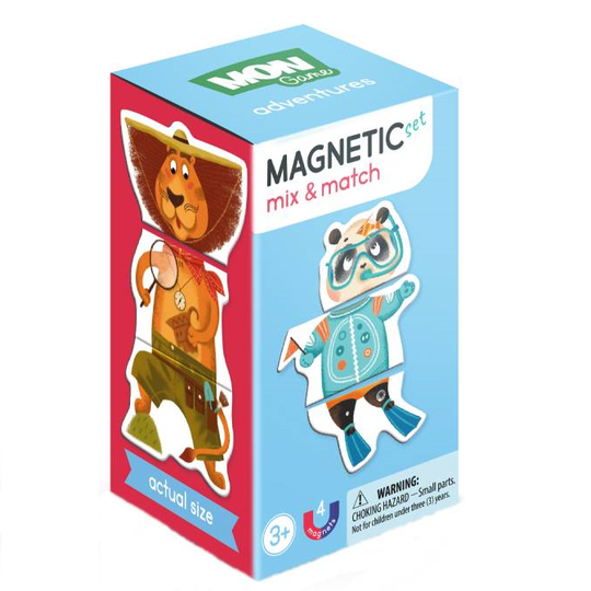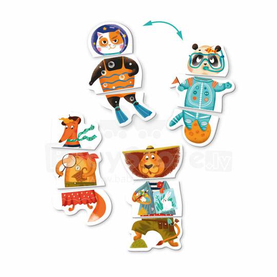 Aquest joc consisteix en 12 peces de cartró magnètic que es poden combinar entre si per crear diferents personatges. Ideal per ampliar vocabulari sobre els personatges i també per desenvolupar la concentració i la imaginació.