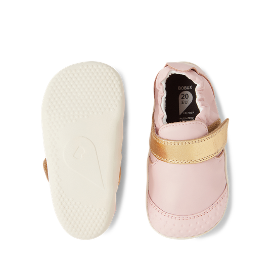 Sabates esportives casuals de pell color plata. Fabricat amb cuir suau de primera qualitat, flexibles i resistents, amb una sola corretja de tancament amb velcro, fàcils de posar i treure. De disseny elegant són les sabates perfectes per anar a tot arreu per als petits principiants que fan els primers passos.