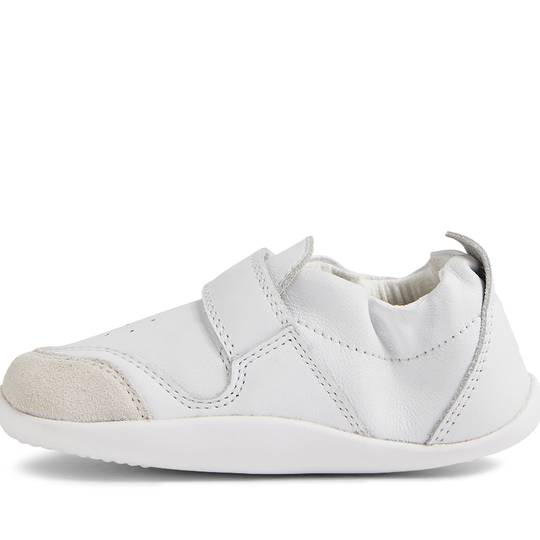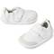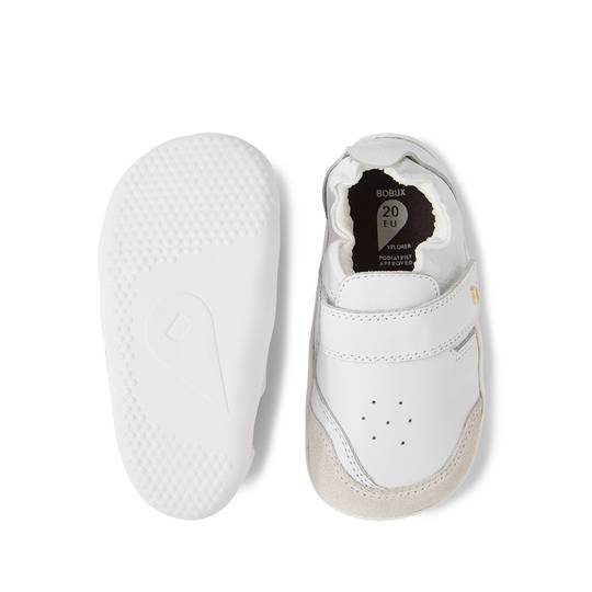 Sabates esportives casuals de pell color plata. Fabricat amb cuir suau de primera qualitat, flexibles i resistents, amb una sola corretja de tancament amb velcro, fàcils de posar i treure. De disseny elegant són les sabates perfectes per anar a tot arreu per als petits principiants que fan els primers passos.