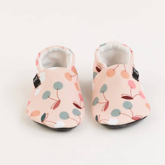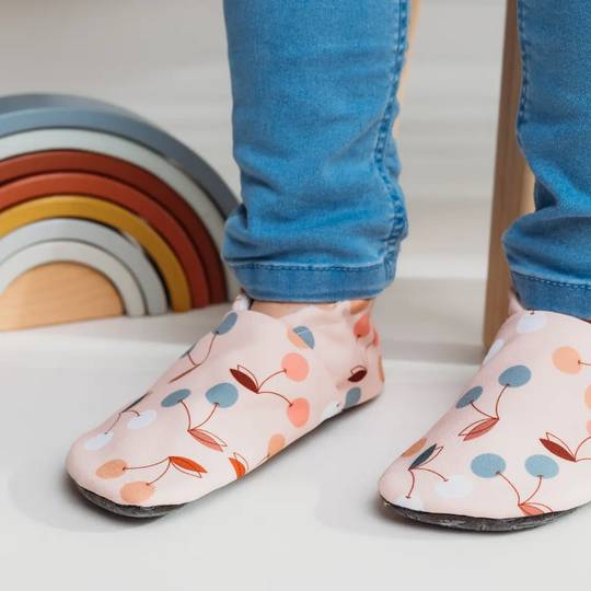Sabatilles Snugi, adornades amb un estampat de cireres. El seu disseny barefoot i la seva capacitat de rentar-se a màquina ofereixen comoditat i frescor sense preocupacions. En tons pastel suaus amb un bonic estampat de cireres.