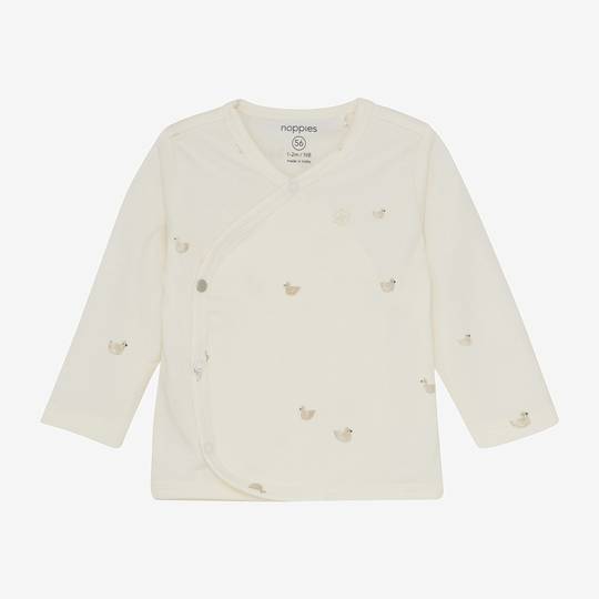 L'estirament del cotó suau la fa molt còmoda. La solapa amb botons a pressió facilita molt el canvi. No cal treure la samarreta pel cap, i això ho fa molt més fàcil.