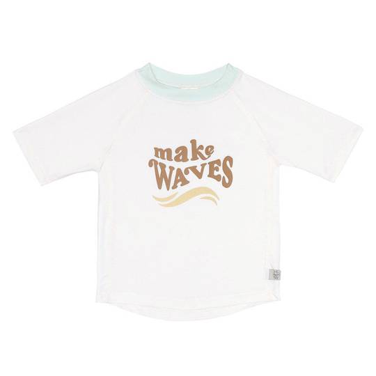 Samarreta de màniga curta amb protecció solar. Fabricada amb un teixit suau que facilita el seu canvi. La protecció UV 50+ combinada amb protecció solar garanteix que la pell sensible dels infants estigui ben protegida a l’estiu.