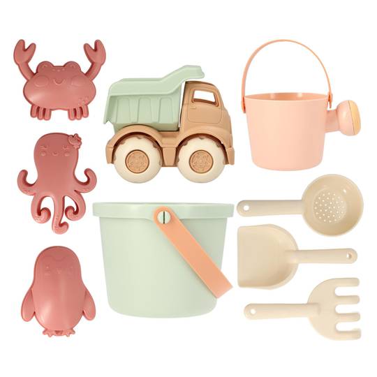Complet set de joguines de platja, amb un camió, per fer les construccions més xules!