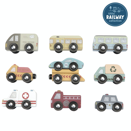 Set de 9 vehicles que també es poden utilitzar a les vies del tren.