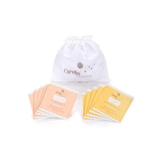 Pack de 10 monodosis per anar de viatge, 5 de gel y xampú i 5 de crema hidratant.