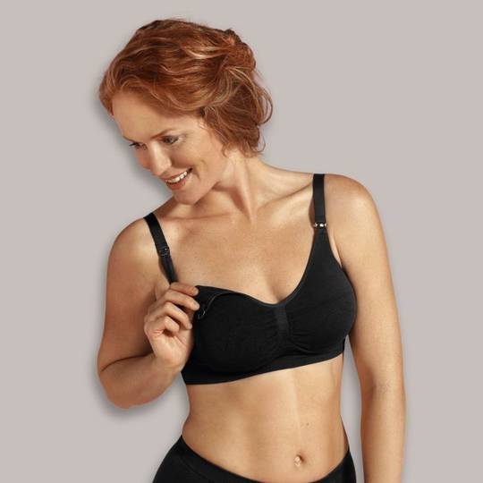 Sostenidor sense costures suau i còmode que s'adapta als canvis que experimenten els pits de la dona lactant. Els tancaments de lactància, fàcils d'utilitzar amb una sola mà, exposen el pit sencer per maximitzar el contacte pell amb pell amb el nadó durant la lactància.