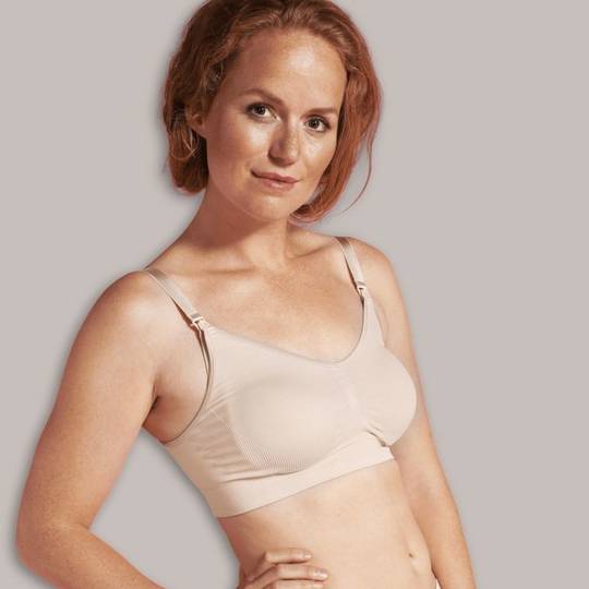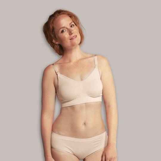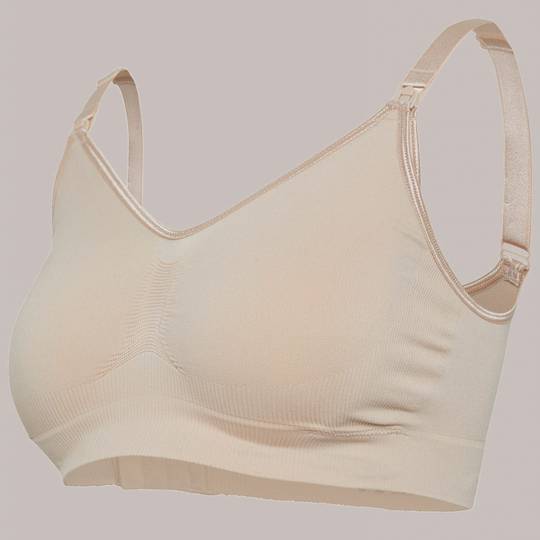 Sostenidor sense costures suau i còmode que s'adapta als canvis que experimenten els pits de la dona lactant. Els tancaments de lactància, fàcils d'utilitzar amb una sola mà, exposen el pit sencer per maximitzar el contacte pell amb pell amb el nadó durant la lactància.