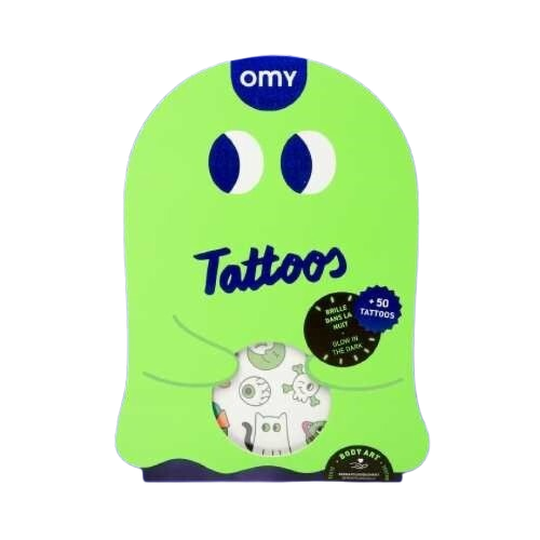 Aquesta làmina de 50 tatuatges temporals et porta a un món ple de fantasmes entremaliats i altres criatures divertides (i lleugerament aterridores).