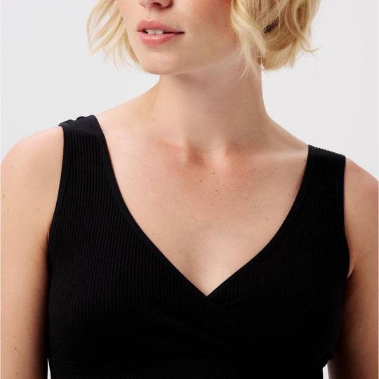 El top Cayla presenta una pràctica capa creuada i està fet d'un material deliciosament suau. En diem suavitat al tacte. La capa creuada i l'elasticitat han fet que aquest top també sigui perfectament adequat per a la lactància materna.
