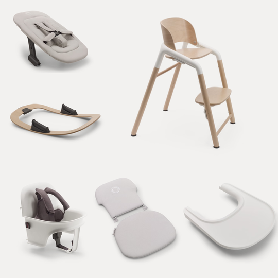 El Pack Trona Bugaboo Giraffe Complet complementa la teva cadira Bugaboo Giraffe amb accessoris a pressió que s'adapten a cada etapa del creixement del teu fill des del naixement.