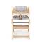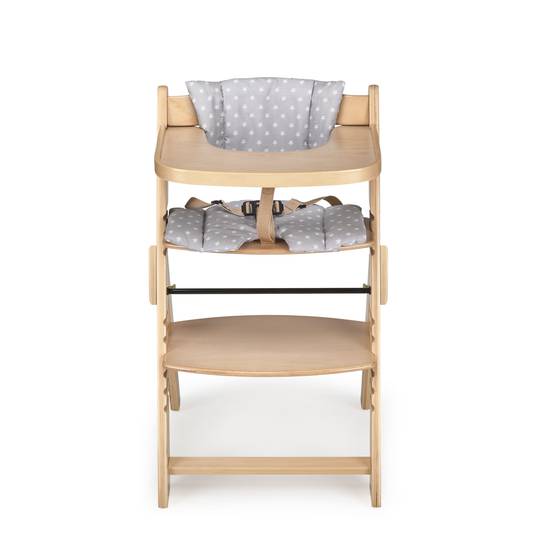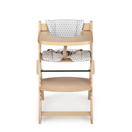La seva estructura és de fusta massissa i contraxapat durador oferint resistència i seguretat amb un pes màxim de 15 kg a la trona de nadó i 35 kg a la cadira per a nens grans.
