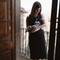 Vestit curt per sobre els genolls. S'aixeca la part de davant per poder donar el pit còmodament.